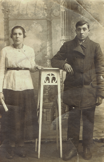Weronika Przekopem z bratem Antonim Przekopem. Rodzinny portret rodzeństwa z lat 20. XX wieku.