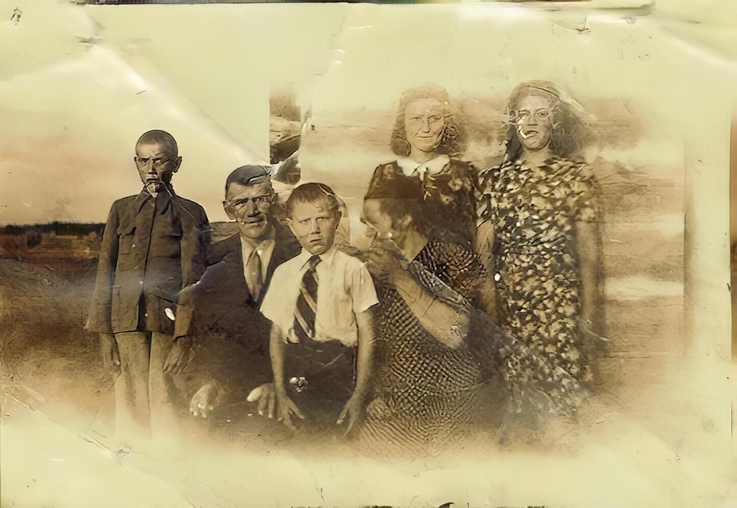 Lata 40. XX w. W tle dom, w którym do dziś mieszka rodzina. Fotografia szczególna – od niej