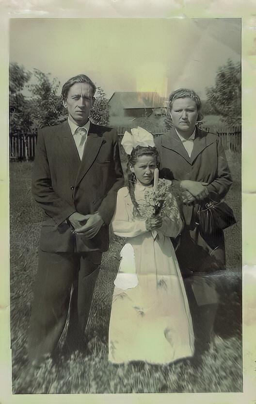Janina, Wacław i Władysława Dźwilewscy – zdjęcie wykonane w dniu komunii, pełne rodzinnej